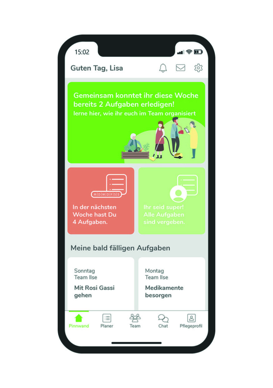 Diesen Service bietet die Vitakt-App 2.0. Sie vereinfacht die Alltagsorganisation und Kommunikation der an der Pflege beteiligten Personen. So können wichtige Unterlagen des Angehörigen abgespeichert, Termine und To-dos strukturiert und Aufgaben verteilt werden. Zudem kann das Vitakt-Hausnotrufsystem in die App eingebunden werden, sodass Meldungen des Notrufknopfes direkt auch das Unterstützungsnetzwerk erreichen. So macht die App aus Einzelnen ein Team, bietet Lösungen im Alltag und schafft emotionale Erleichterung.