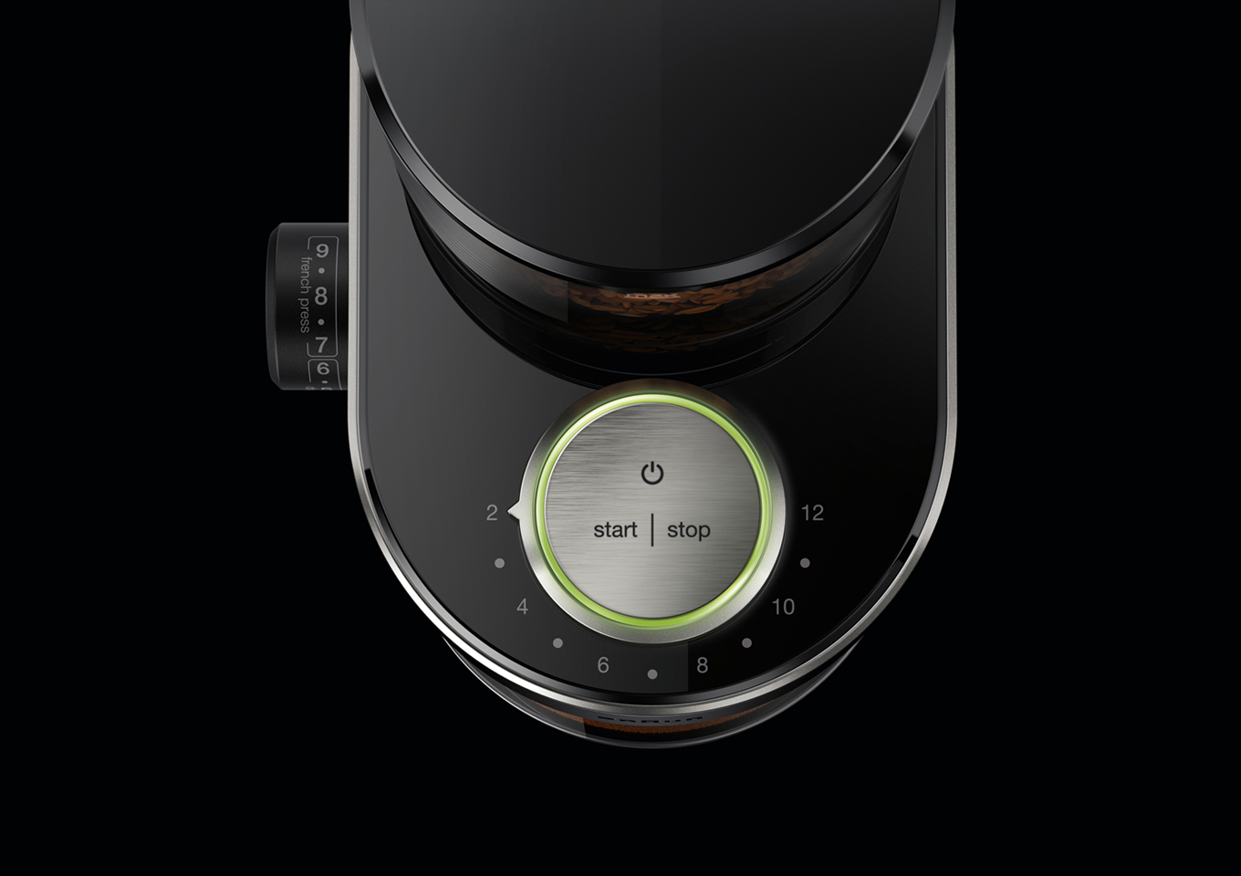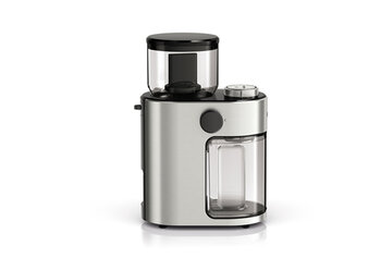 Der transparente 220 Gramm fassende Bohnenbehälter verfügt über eine große Einfüllöffnung. Die Kaffeebohnen werden für wahlweise zwei bis zwölf Tassen zerkleinert, mit einem von 15 verschiedenen Mahlgraden – je nach individuellem Gusto. Damit Röstaromen beim Mahlen geschont werden und der Kaffee nicht verbrennt, leuchtet ein Überhitzungsschutzsignal auf, sollte das Mahlsystem zu heiß werden. In einem transparenten, abnehmbaren Behälter wird das frisch gemahlene Kaffeepulver gesammelt und kann im Anschluss komfortabel und direkt in die Kaffeemaschine gegeben werden. Und auch an Komfort in puncto Reinigung wurde gedacht: Eine spezielle Bürste erleichtert die Entfernung von feinem Kaffeepulver, die integrierte Kabelaufbewahrung ermöglicht ein platzsparendes Verstauen und sorgt gleichzeitig für Ordnung in der Küche.