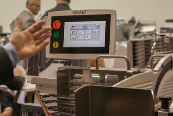 Ein zentrales Element der gezeigten Automatisierungslösungen ist der Vollautomat VA900, der als Schlüsselprodukt am Beginn jeder Prozessautomatisierung steht. Die mittlerweile in dritter Generation produzierte Maschine vereint höchste Produktivität, Effizienz und Hygiene und ist für den Einsatz im Theken- und Küchenbereich ebenso geeignet wie für die Großgastronomie, Gemeinschaftsverpflegung oder handwerkliche Betriebe. „Der VA900 ist ein echter Meilenstein für unsere ProfiWelt und dank seiner innovativen Elektronik der Schlüssel zur Erschließung neuer Märkte“, erklärt Hermann Graef, Geschäftsführer der Gebr. GRAEF GmbH & Co. KG. Die Kombination aus automatischem Schlittenlauf, automatischer Ablage und Schneidgutzuführung macht den VA900 weitgehend bedienerunabhängig. Die modular aufgebaute Funktionseinheit ermöglicht kundenspezifische Anpassungen, während die intuitive Touchscreen-Bedienung mit symbolbasierter, sprachunabhängiger Menüführung eine einfache Handhabung sicherstellt. Besonders überzeugt der VA900 durch seine Integrationsfähigkeit in komplette Prozessketten – bis hin zur Verpackung. Gemeinsam mit internationalen Partnern präsentiert GRAEF voll integrierte Lösungen, die vom dekorativen Aufschnitt bis zur verpackten Verkaufseinheit reichen.