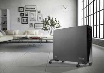 Wenn das vorhandene Heizsystem nicht mehr ausreicht oder kurzfristig Wärme benötigt wird, kommen sie zum Zug: mobile Heizgeräte. Sie spenden an kalten Tagen schnell dort Wärme, wo sie gerade benötigt wird. Der neue Keramikheizer HFX30C18 fügt sich durch sein minimalistisches Design dezent in jede Umgebung ein. Kompakt und daher platzsparend gebaut, punktet das Gerät – dank des breiten Keramikelements – mit einer hohen Heizleistung. Mithilfe der intelligenten Keramiktechnologie wird ausströmende Luft nach außen geblasen und im Raum verteilt. Das 1.800 Watt starke Gerät ist wahlweise in den Farben Grau und Weiß erhältlich und liefert Wärme schnell und energieeffizient. Dank des PTC-Elements wird die Heizleistung angepasst, sobald die Temperatur im Raum steigt. Zwei Leistungsstufen garantieren ein Höchstmaß an Komfort und Wärmeleistung. Der Keramikheizer ist geeignet für Räume bis zu einer Größe von 55 m³ und arbeitet dank Silence System besonders leise.